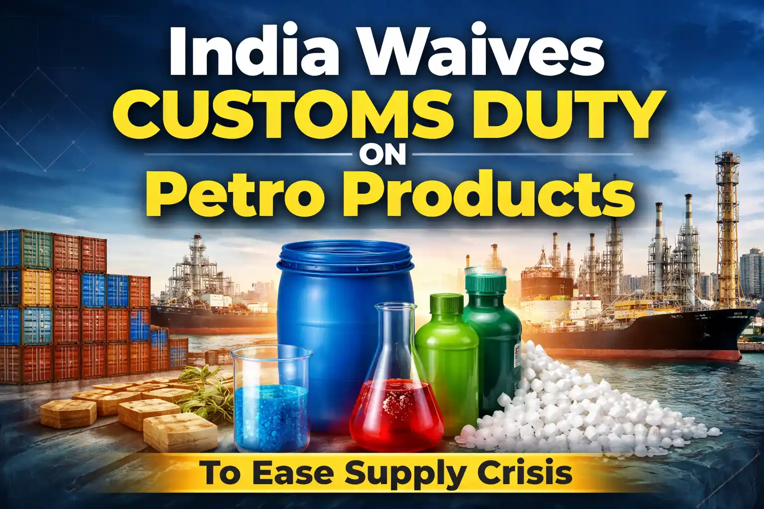 The Government of India has taken a major step amid rising global uncertainty and supply disruptions by removing customs duty (0%) on around 40 petrochemical (petro) products. This decision will remain effective from April 2, 2026 to June 30, 2026, with the primary objective of providing relief to domestic industries facing rising input costs.